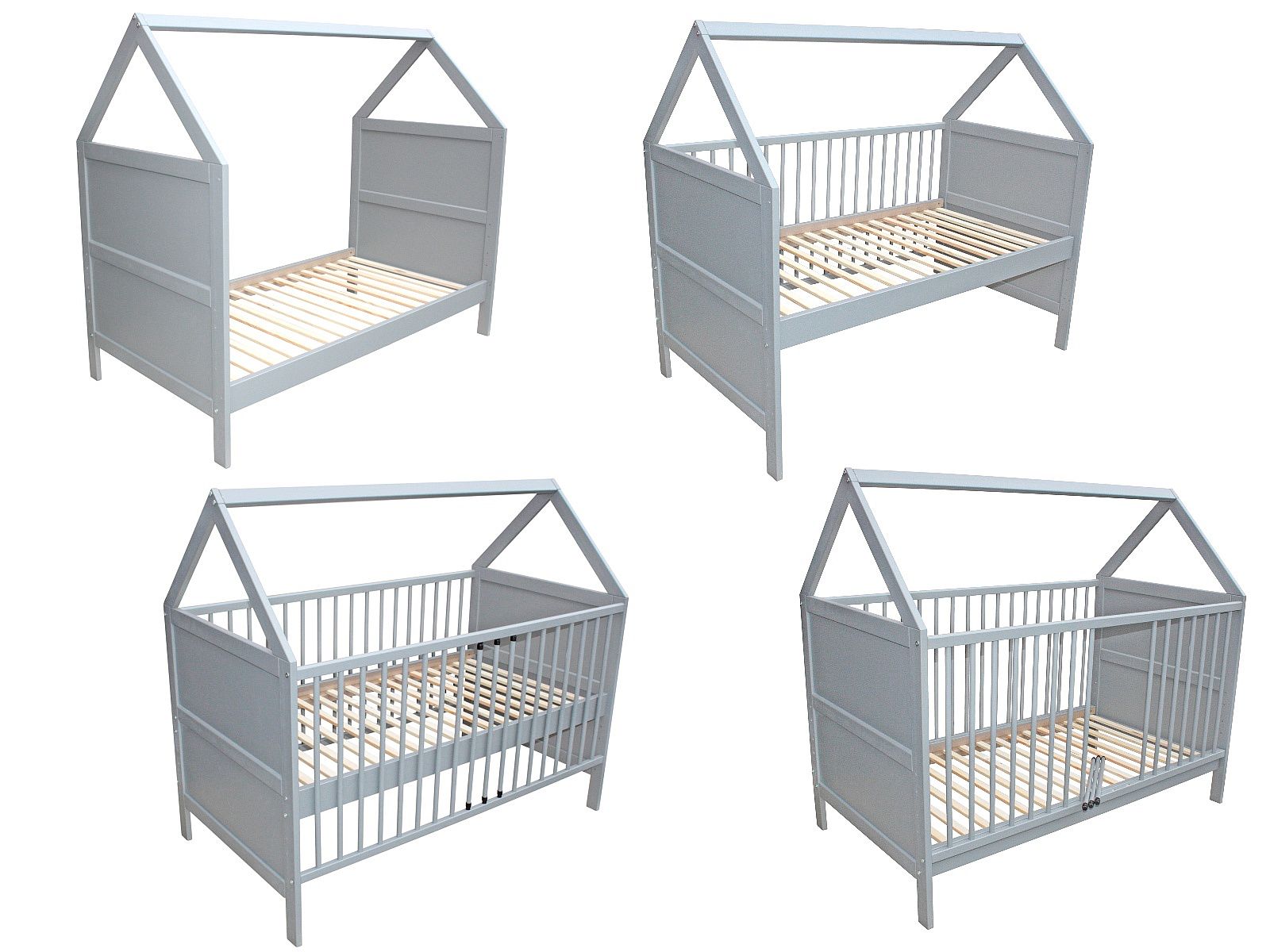 Kinderbett Juniorbett Bett Haus 3 in 1 ( Babybett, Beistellbett und Juniorbett )
